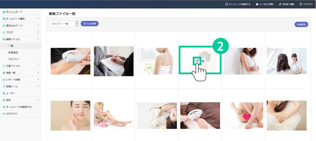 このページでは管理画面の左側にあるメニューから画像をカテゴリーに分ける方法をご説明します。