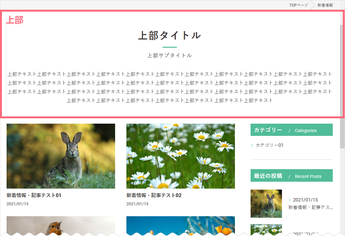 ※上部タイトルは入力していない場合、基本設定で入力した「新着情報名」が表示されます。