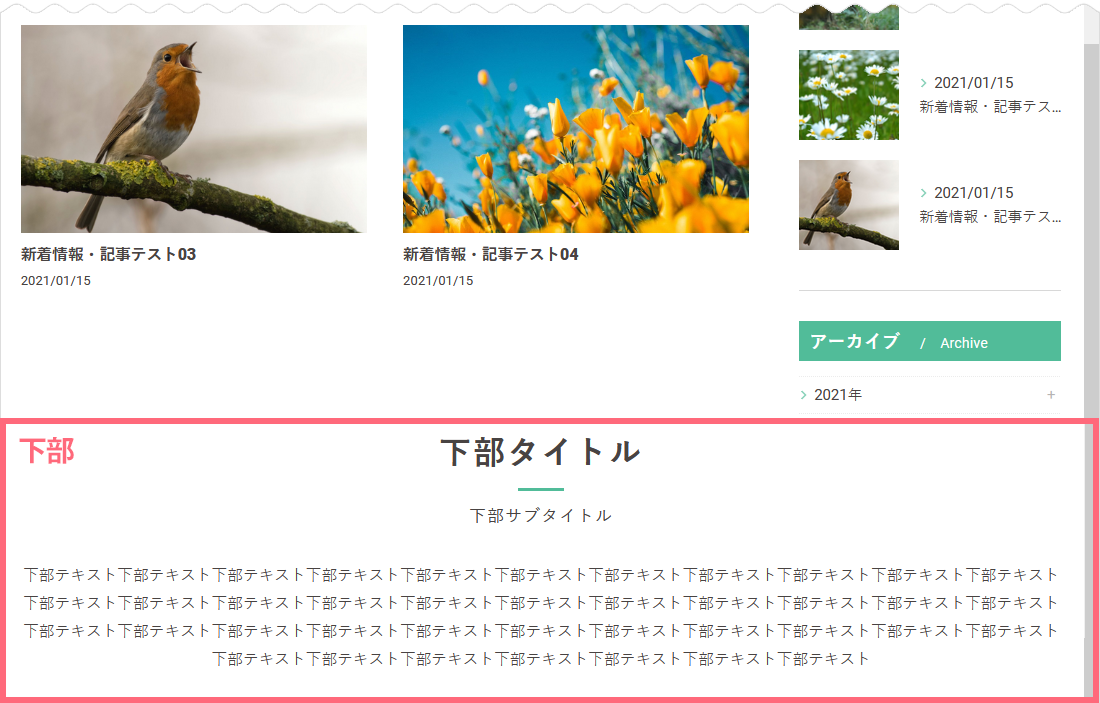 ※上部サブタイトルは入力していない場合、基本設定で入力した「ディレクトリ名」が表示されます。