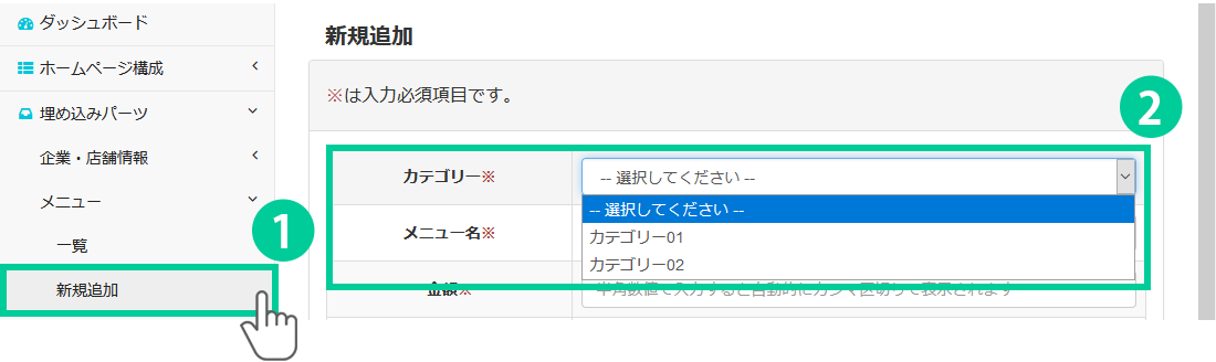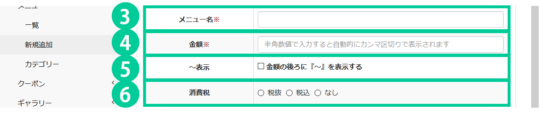 このページではメニューの情報を登録する方法をご説明します。