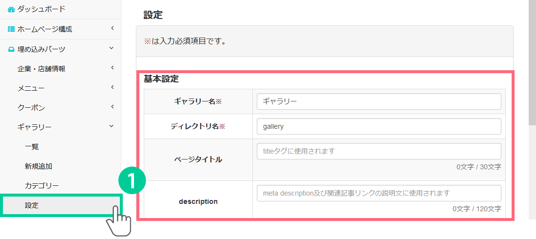 2.【必須項目】ギャラリー名を入力します。