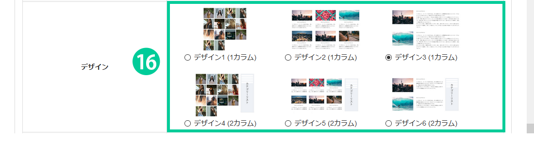 「表示しない」… 2カラムのデザインを選択している場合も、カテゴリナビは非表示となるため、1カラムのデザインに変わります。