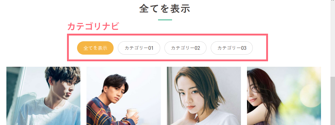19.カテゴリナビの表示設定を行います。カテゴリナビとは上記画像の通り、ギャラリーをカテゴリーごとに登録した際に表示されるボタンです。