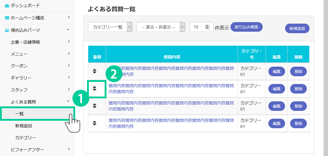 よくある質問の順番を並び替える