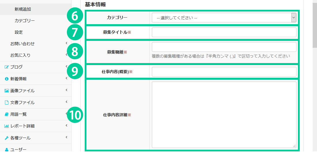 8.【必須項目】募集職種を入力します。