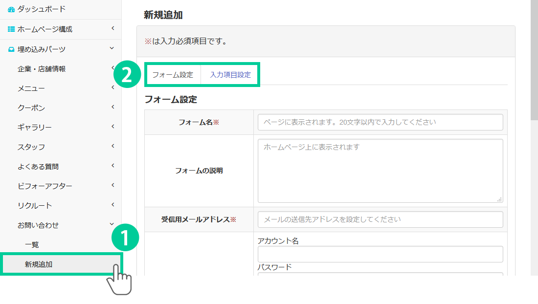 お問い合わせフォームを登録する