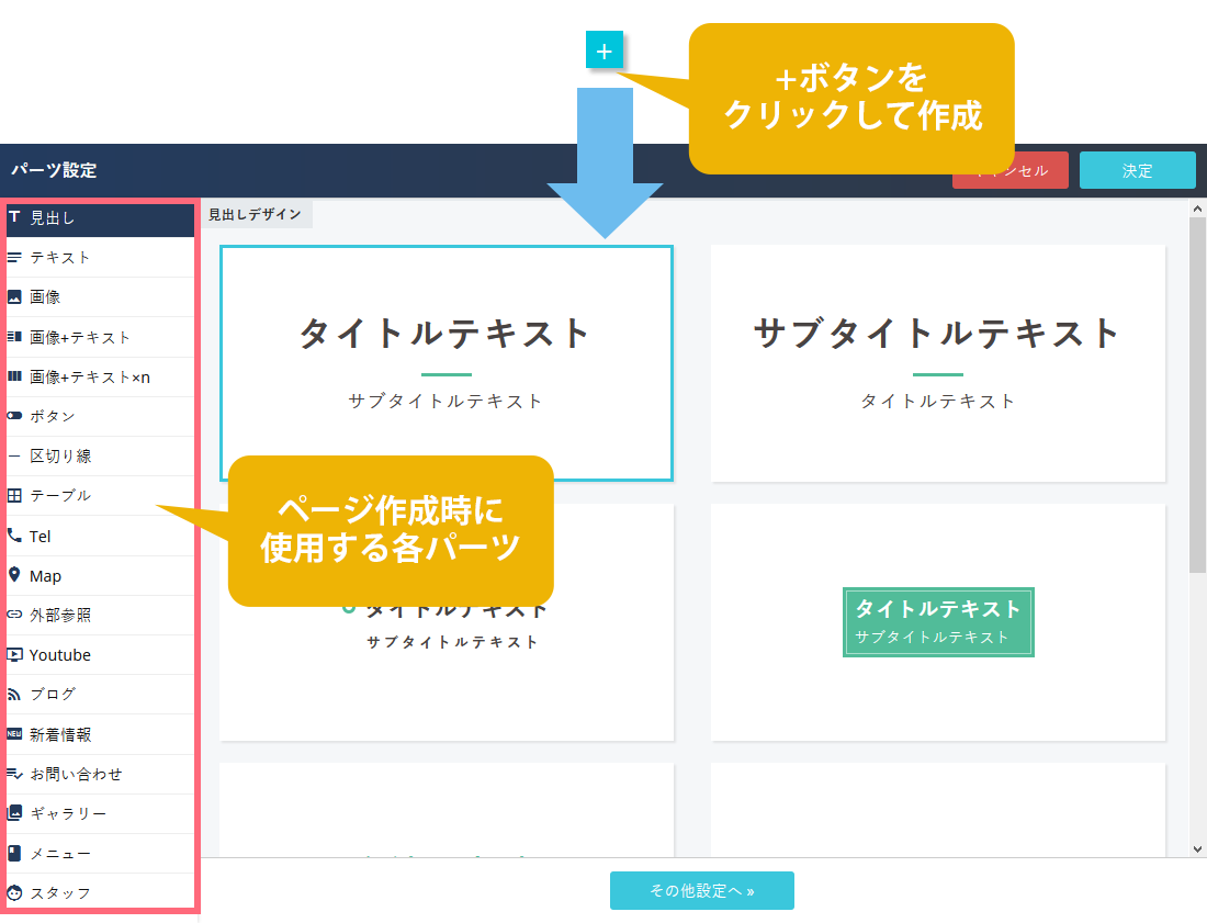 ページのコンテンツ作成についての詳細はこちらからご確認ください。