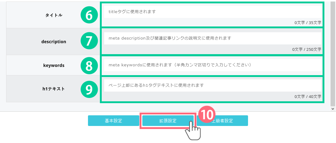 10.⑨番まで入力出来ましたら、「拡張設定」ボタンをクリックして次の画面へ切り替えます。
