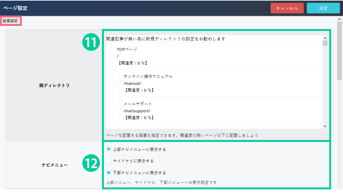 13.「同じカテゴリーのページを表示する」にチェックを入れると、親ディレクトリが同一のページが全て表示されます。