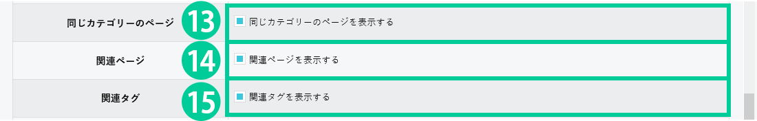 15.「関連タグ」にチェックを入れると、関連するタグが表示されます。※事前にタグの登録が必要です。