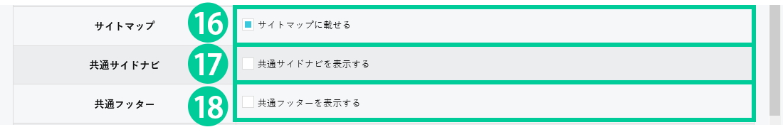 16.「サイトマップに載せる」にチェックを入れると、サイトマップにページ名が表示されます。