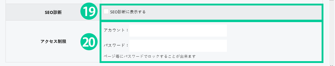 「下部ナビメニューに表示する」… フッター部分のナビメニューにページ名が表示されます。