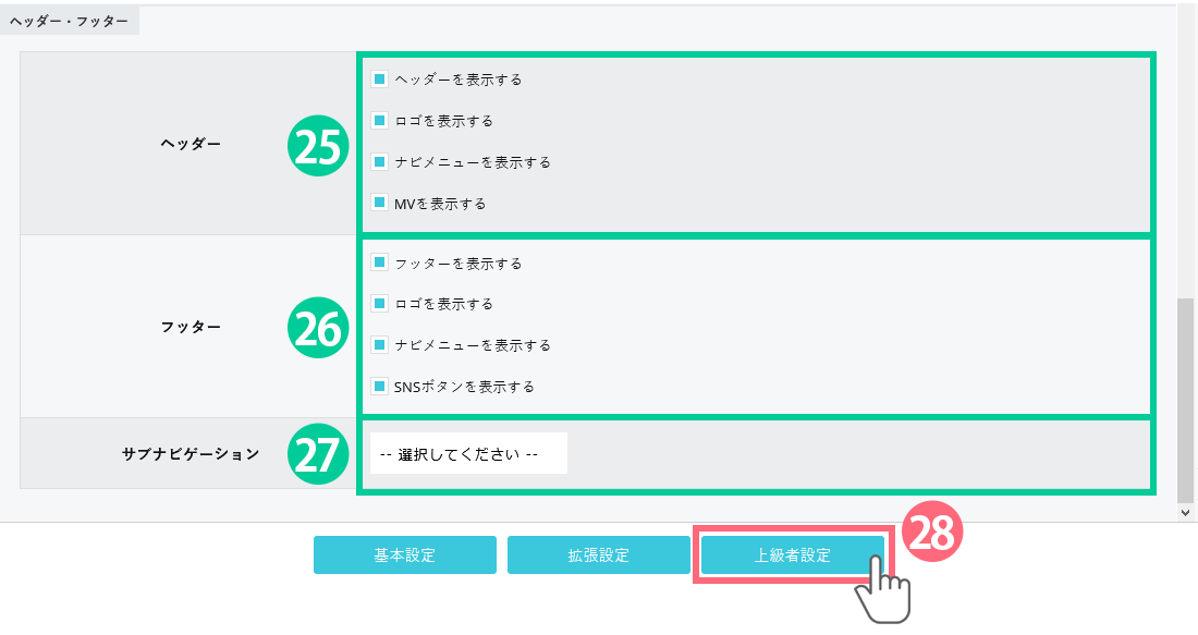 27.「サブナビゲーション」を反映させる場合は選択してください。