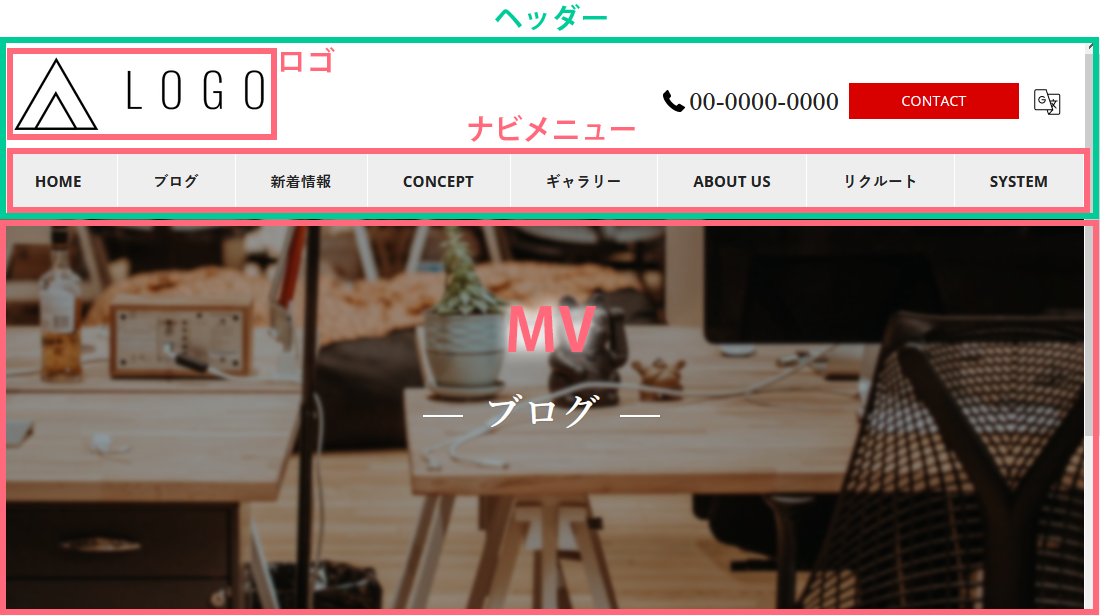 ※説明⑰番の「共通サイドナビを表示する」にチェックを入れた場合に表示されます。(2カラム表示)