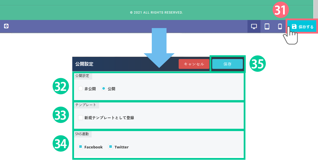 35.「保存」ボタンをクリックすると、ページが公開されます。