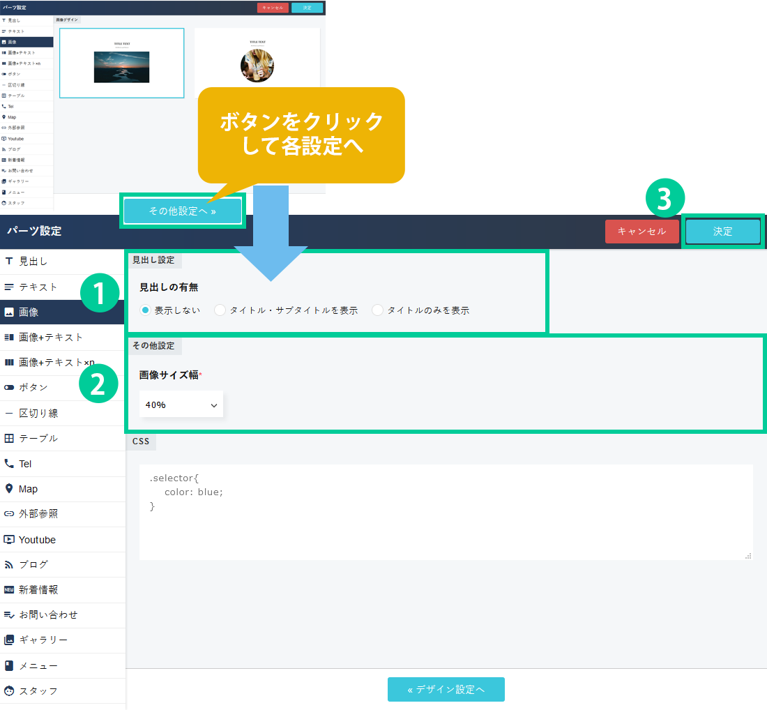 ※事前に画像のアップロードが必要です。アップロード方法の詳細はこちらからご確認ください。