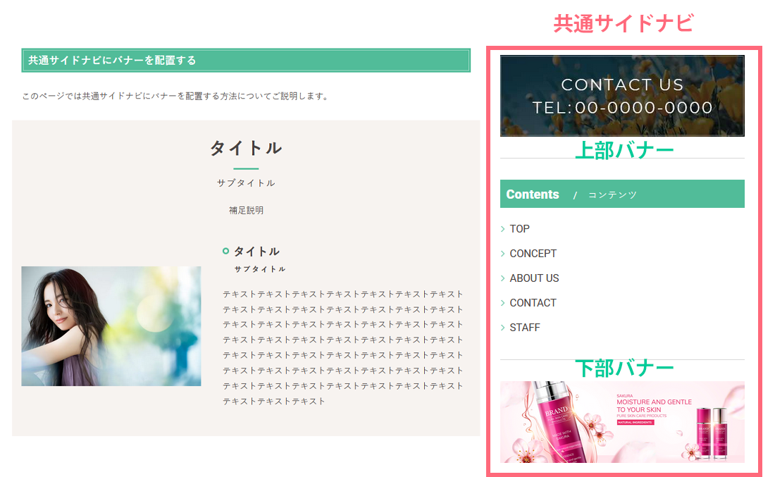 このページでは共通サイドナビにバナーを配置する方法についてご説明します。