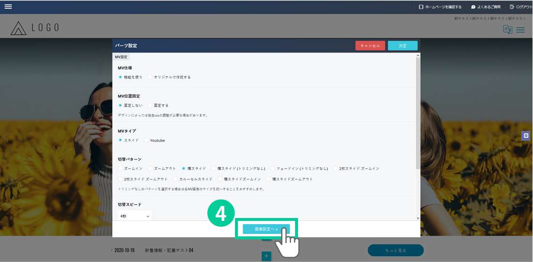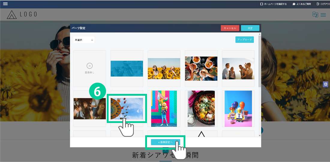 6. 画像を選択したら、「画像設定へ」をクリックします。