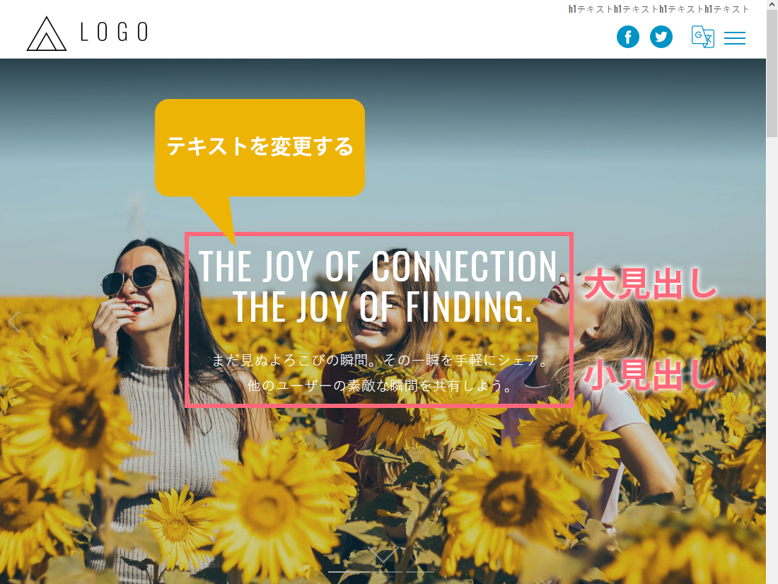 TOPページのスライド画像上のテキストを変更する