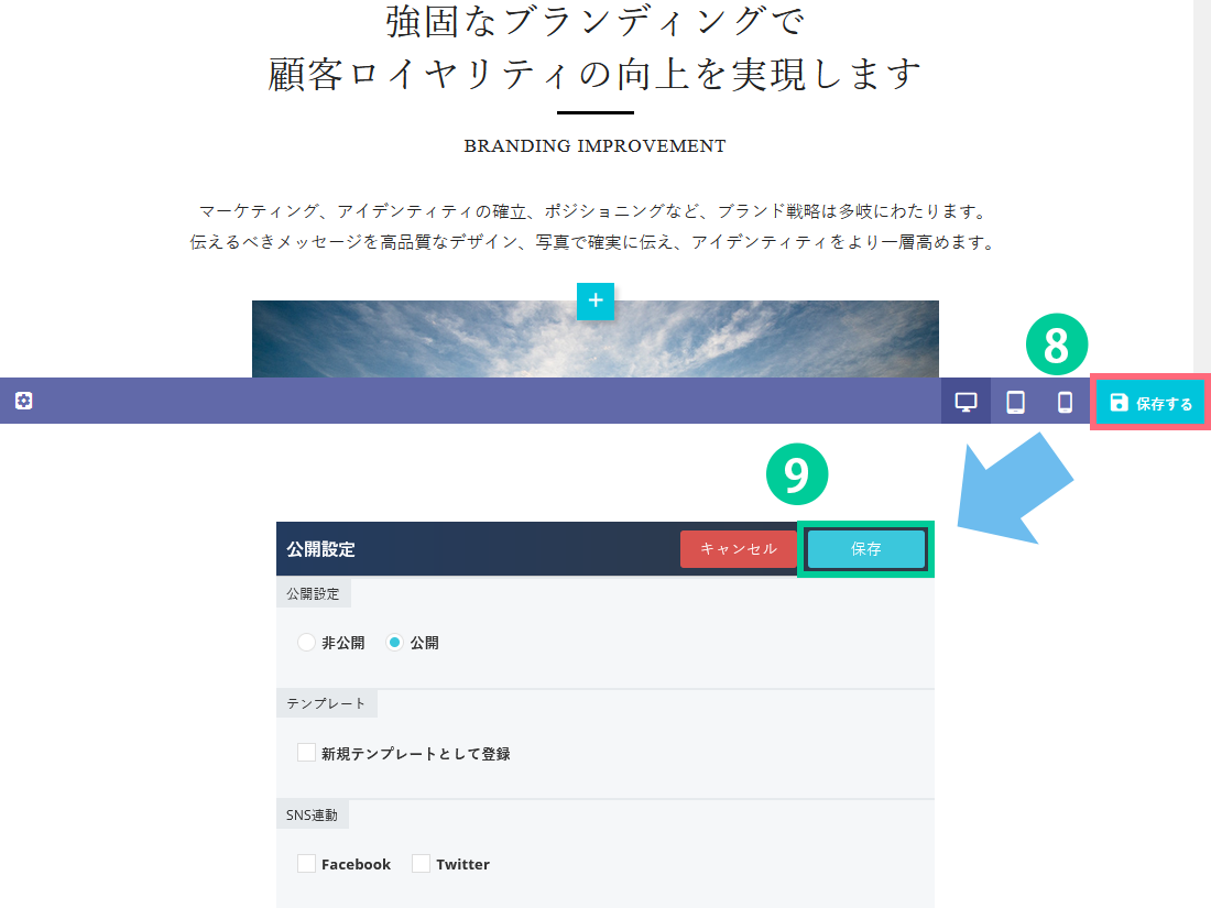 8.「保存する」ボタンをクリックします。 9.ポップアップが表示されるので再度「保存」ボタンをクリックします。