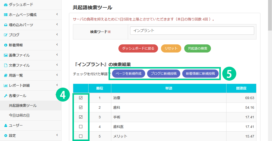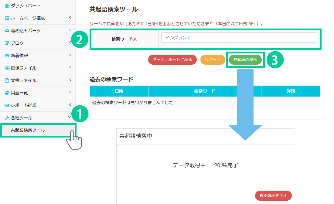 ※サーバーへ大きな負荷がかかるため、共起語検索ツールは1日5回までに利用回数を制限しています。