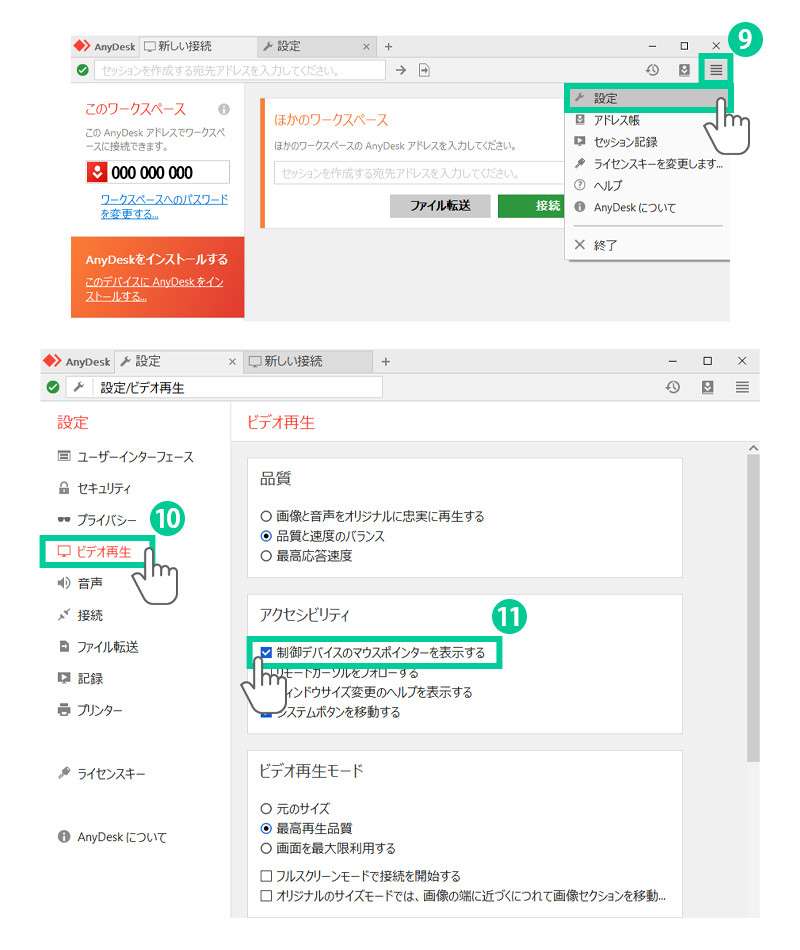 11. 「制御デバイスのマウスポインターを表示する」にチェックを入れて下さい。