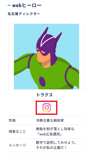 - 個人のSNSで情報発信をしている各スタッフそれぞれの紹介に。
