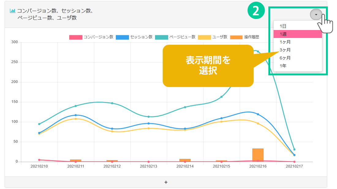 2.▼マークをクリックすると、表示期間を選択することが出来ます。