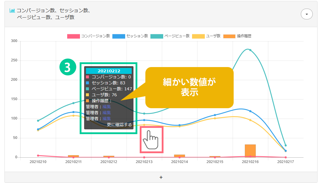 3.グラフの上にマウスをのせると、細かい数値を確認することが出来ます。