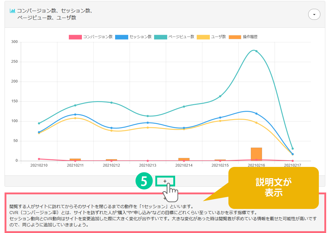 5.「+」ボタンをクリニックすると、各グラフの説明文が表示されます。