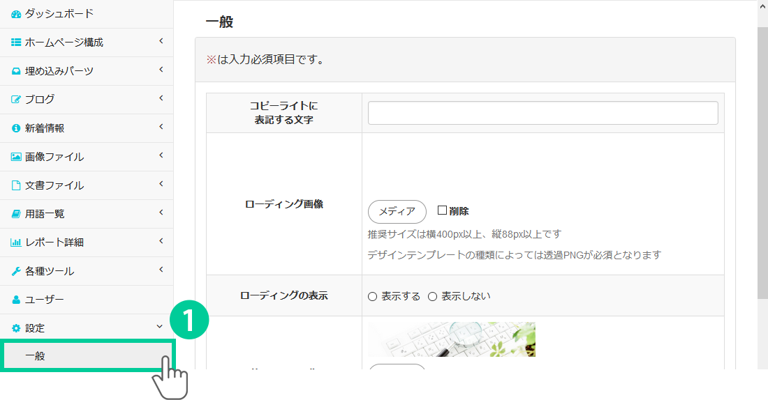 このページではホームページ全体の基本的な設定方法をご説明します。