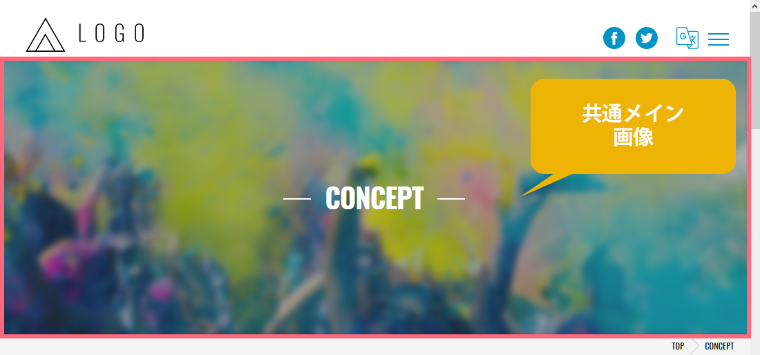 共通メイン画像の設定を行います。設定すると反映イメージ画像のように、各ページの共通メイン画像が表示されます。