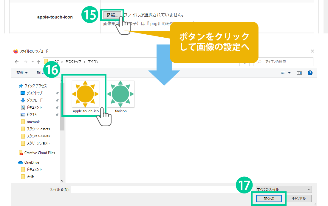 15.「参照」ボタンをクリックすると、自身のパソコン画面から直接アップロードが出来ます。
