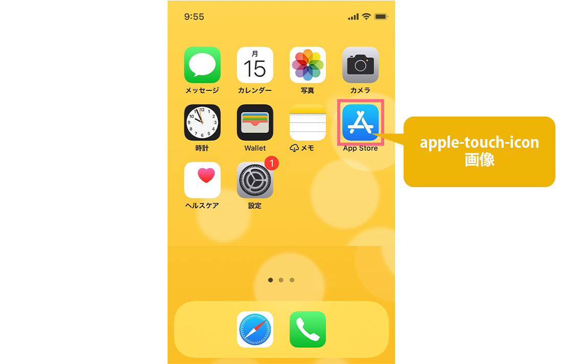 apple-touch-iconとは、iPhoneやAndroidなどでWebサイトをホーム画面に追加した時に表示されるアイコンです(反映イメージ参照)。