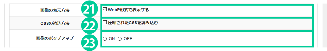 「 WebP形式で表示する」にチェックを入れると 画像の表示速度が若干短縮されます。
