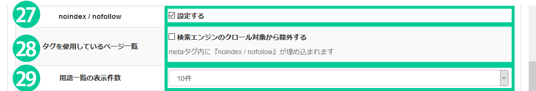 noindex・nofollow / タグを使用しているページ一覧 / 用語一覧の表示件数