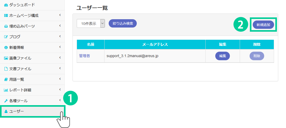 このページでは、ユーザーアカウントを追加する設定方法についてご説明します。