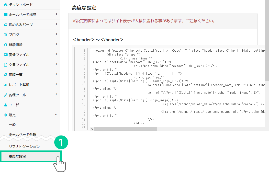 ※HTMLやPHPを理解していることが前提の上級者向けの機能です。
