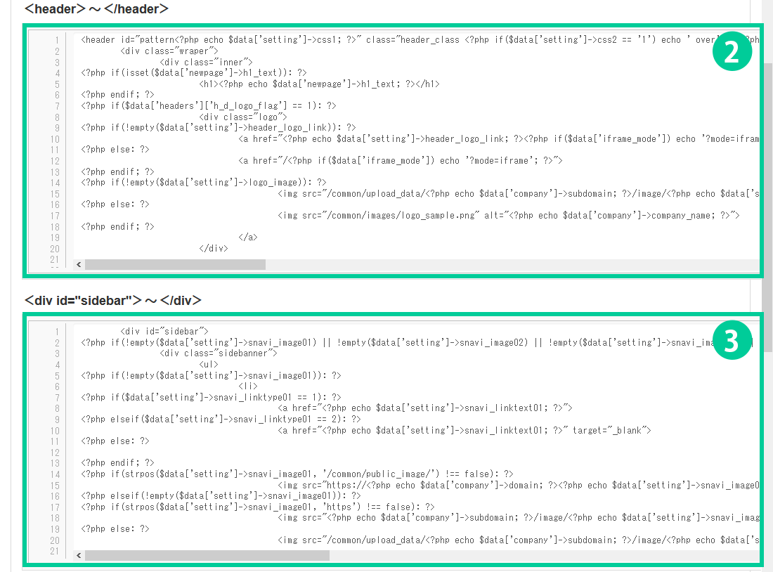 このページでは、ヘッダー・サイドバー・フッターのHTMLタグを編集する方法についてご説明します。